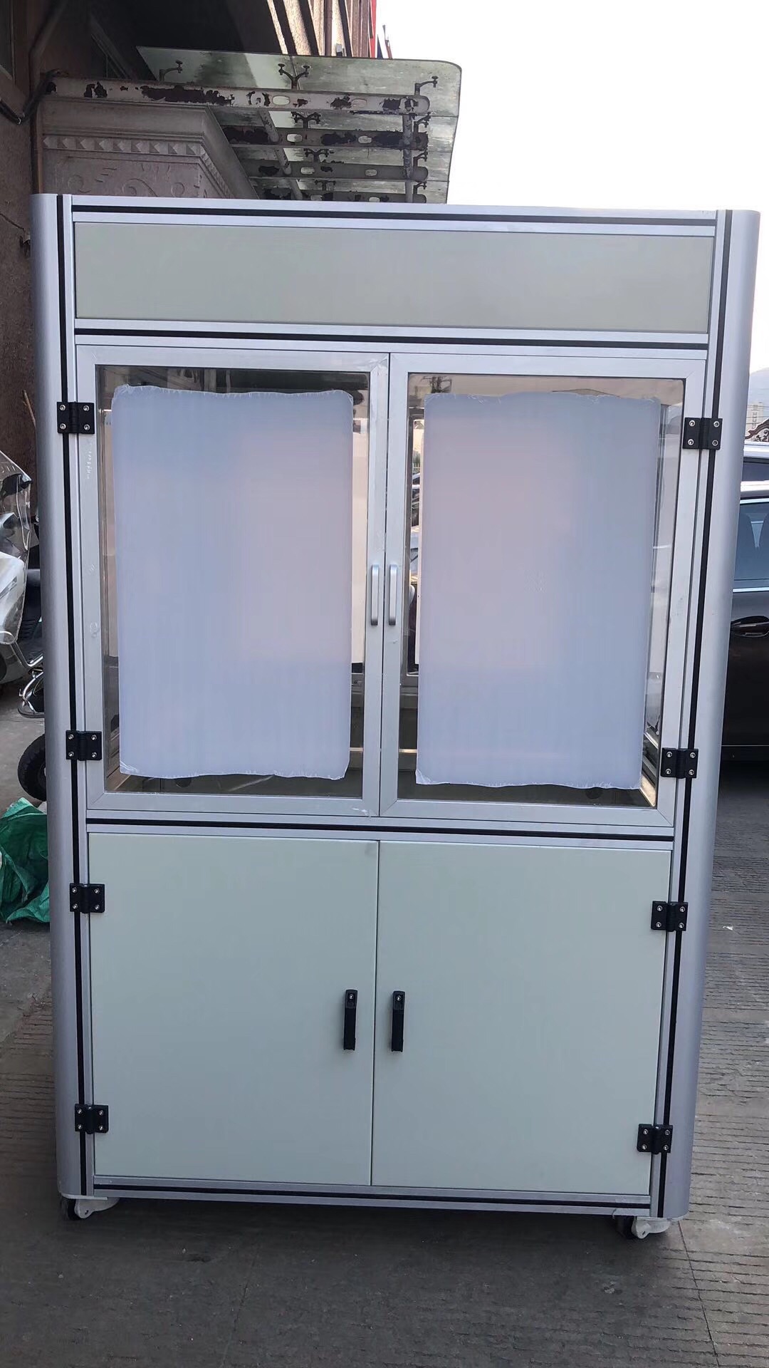 了解到王總我當時就問一下王總的機架的具體承重及尺寸,并且我們互相建立了微信技術小群1 對1技術參與直接溝通方案設計。約在2天經過技術的1對1的技術服務,我們雙方把方案敲定了。因為時間的關系,我們第一次試制了5臺。自動化設備用鋁型材框架+鈑金做門。并與7月30號順利交期。王總他們收到貨后經過性能測試,鋁型材框架在承載力和重量及生產效量能都遠遠大于原來鈑金焊接機架。王總為此非常開心。